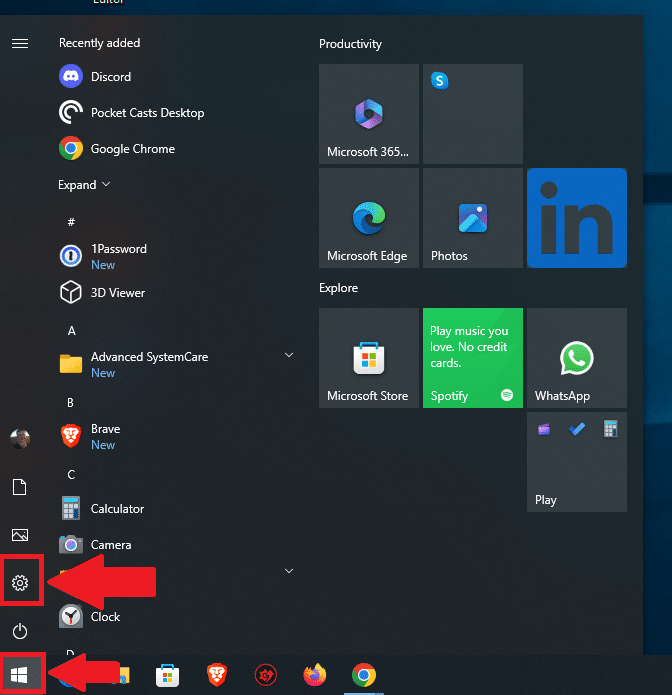 In the Start Menu, single left-click on the gear icon, or Settings.