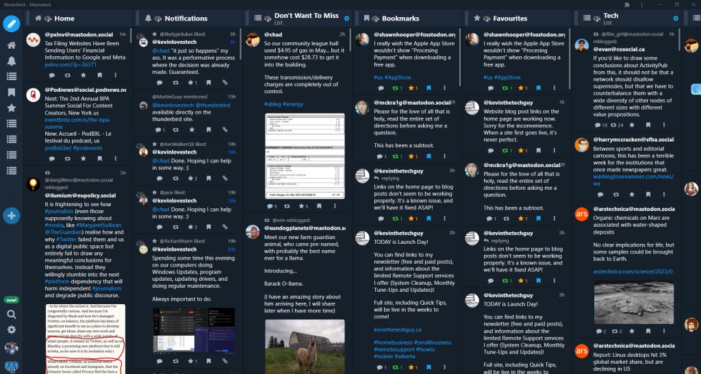 MastoDeck is a FREE (donations appreciated) third party web based tool very similar to Tweetdeck. They're still working out some bugs, but it's pretty decent.
