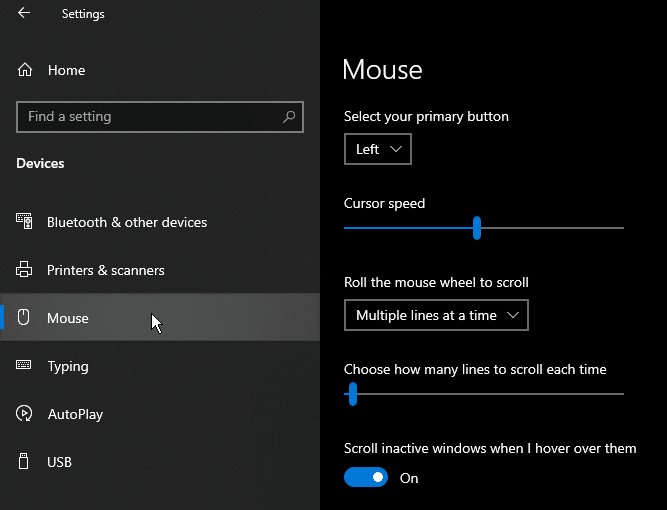 Click "Mouse" on the left. Then, enable the switch under "Scroll inactive windows when I hover over them".