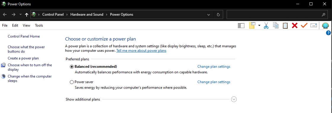 Then, regardless of the “power plan” you’re using, click “Change Plan Settings”.