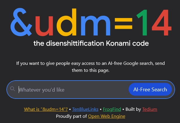 Alternatively, I also use Startpage.com, which delivers Google results with far less clutter, and UDM14.com, which tweaks Google’s URL to strip out ads and AI noise. Read the blog post to learn more.