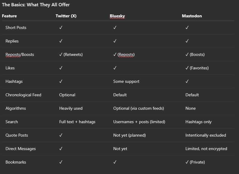 Mastodon, on the other hand, offers a smaller, more intentional community. I appreciate its strong stance on respect, moderation, and thoughtful interaction—something Twitter has largely abandoned to grab attention and maximize profit. While it’s clear Mastodon won’t become mainstream due to its learning curve and niche appeal, I still think it’s the best place for thoughtful conversations.